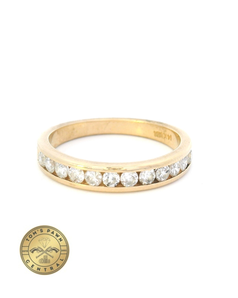 Glimmering procession of diamonds in an eternal embrace with radiant yellow gold, exuding timeless elegance. A classic diamond band, resplendent with enduring glamour.